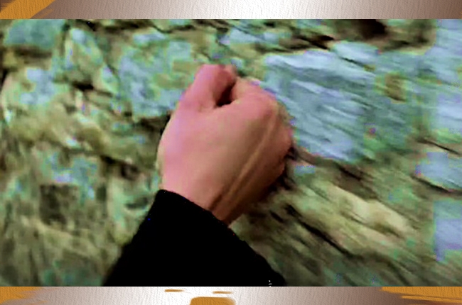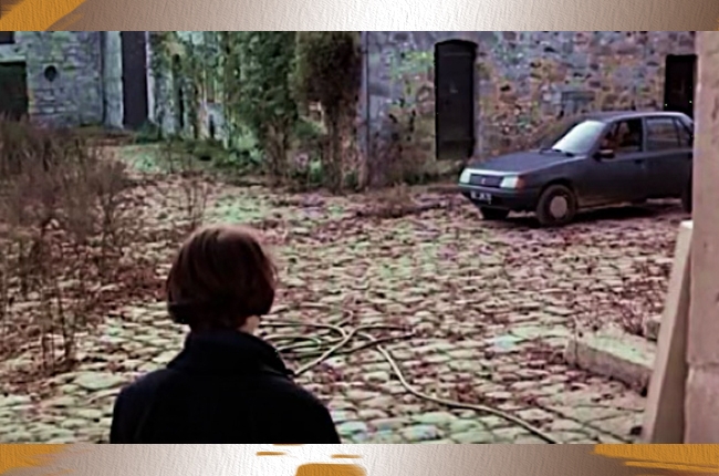 Ilustrasi 5. Cuplikan adegan Julie meninggalkan Olivier dan menggesekan tangannya ke tembok bertekstur kasar. Sumber: Three Colors Blue