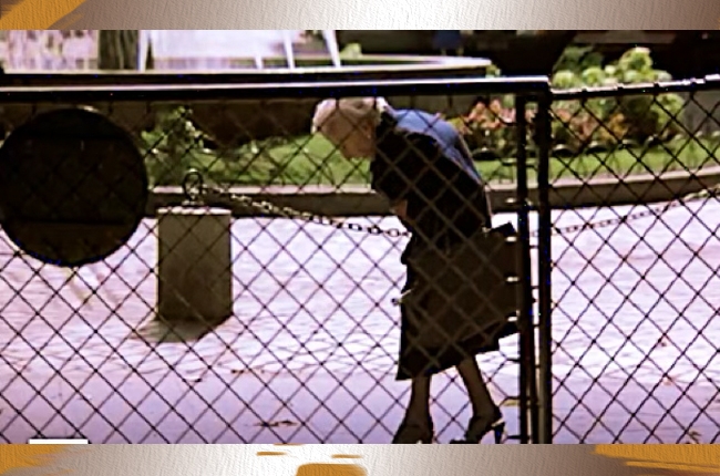 Selain warna, film ini juga menghadirkan metafora melalui pergeseran aksi yang sederhana namun sarat makna. Dalam salah satu adegan yang ditampilkan melalui sudut pandang subjektif Julie, terlihat seorang nenek tua berjalan tertatih melewati pagar yang membatasi bidang gambar. Ia berusaha membuang botol ke dalam tong sampah yang lebih tinggi dari tubuhnya. Adegan singkat ini memantulkan kondisi batin Julie sendiri: rapuh dan tertatih, tetapi tetap berusaha melepaskan beban yang menekan hidupnya. Dengan cara ini, tindakan kecil dalam ruang visual berubah menjadi refleksi emosional yang memperdalam pengalaman batin tokoh utama.
