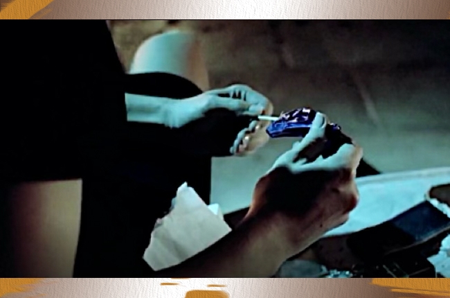 Ilustrasi 4. Cuplikan adegan Julie menemukan permen warna biru dan bersama Olivier. Sumber: Three Colors Blue