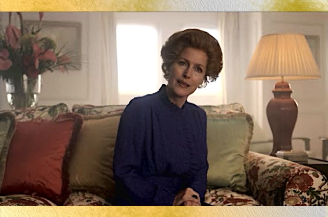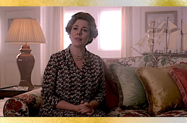 Ilustrasi 3. Two shot, jarak posisi duduk Margaret Tatcher dan Ratu Elizabeth II di Queen’s Sitting Room, dalam episode “48:1” serial The Crown, Netflix, season 4, episode 8, 2020.