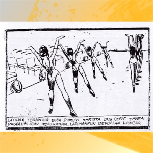Panil ketiga, dalam pengertian kontekstual, ternyata pemunggungan membuat gambar itu pun melampaui konteksnya, sehingga bukan sekadar menjadi ilustrasi bagi narasi, melainkan gambar mandiri sebuah koreografi.