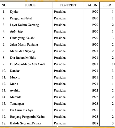 - Djoko, 1970, 1 jilid, 64 halaman.