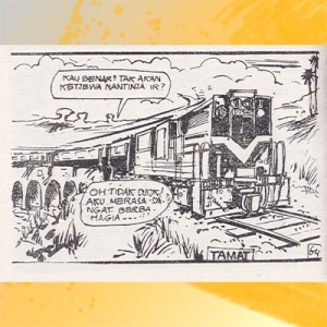 Adegan Jalan Masih Panjang. Dalam kereta api Senja ke Jakarta, transportasi tahun 1970-an.