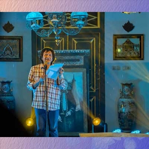 Acep Zamzam Noor membacakan karya puisi-puisinya pada Malam Sastra di penyelenggaraan Borobudur Writers and Cultural Festival (BWCF) ke-14 tanggal 21 November 2025 di Keraton Cirebon. (Sumber: Dokumentasi BWCF)
