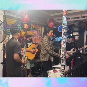 Sekitar pukul 22.30 WIB, band live akhirnya naik ke panggung kecil. Begitu drum dipukul, suasana ruangan berubah hampir seketika. Bass mulai berdetak pelan, sementara gitar memainkan ritme reggae yang santai namun mengalir seperti ombak kecil. Lagu pertama berjudul “I Don’t Want to Talk.” Tidak semua orang langsung berdiri, sebagian masih duduk sambil menikmati musik dan melanjutkan percakapan, tetapi perlahan beberapa pengunjung mulai mendekat ke arah panggung dan mulai berdiri sambil berjoget dan bernyanyi seakan – akan mereka terhipnotis oleh intruksi dari penyanyi. Mereka bernyanyi sambil triak – triak dan mengangkat cup minum siatas kepala, ada juga yang sambil merokok. Pengunjung lokal maupun turis sama – sama ikut bernyanyi dan berjoget berkumpul didepan panggung yang sebenernya mereka tidak saling kenal namun semua berubah seakan – akan mereka saling mengenal satu sama lain. Di dekat pintu masuk café, tiga perempuan terlihat paling bersemangat, ereka berjoget tanpa banyak rencana, tertawa keras, dan sesekali menyapa orang-orang di sekitar mereka. Beberapa wisatawan asing tersenyum melihatnya. Ketika band mulai memainkan lagu-lagu seperti “Sajojo,” “Sayidan,” “Yang Hitam,” hingga “Anak Singkong” dalam aransemen reggae, suasana café berubah menjadi lebih hidup. Lampu disko berputar lebih cepat, beberapa orang mulai bernyanyi, dan untuk beberapa menit tampaknya tidak ada yang terlalu memikirkan bahwa ini adalah bulan puasa.