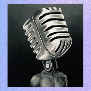 Monodramator sedang bercerita kelindan lupalogi di depan mikrofon. (Sumber: Ilustrasi Supriyanto/Kompas)