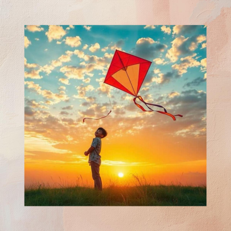 Di sebuah lapangan luas aku dinaikkan. Benang ditarik dan diulur. Aku disendat-sendat, sampai akhirnya sampailah aku di angkasa amat luas tak terhingga, yang terasa sangat ajaib di mata. Aku begitu terperangah. Aku merasa berada di bentang alam yang amat luar biasa. Inilah ciptaan Tuhan yang agung…. Aku berbisik kepada diriku sendiri. Langit biru muda. Awan bagai kapas melayang-layang dan beringsut pelan menghampiri diriku. Betapa!