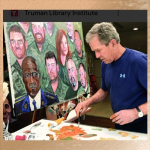 Presiden Amerika Serikat George W. Bush sedang melukis. (Sumber: Buku “Out of Many, One”).