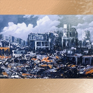 Lukisan SBY yang (menurut keyakinan saya) terbaik, “Stop War, United for Peace” yang bercerita ihwal hancurnya Gaza, disandingkan dengan karya Winston Churchill (Perdana Menteri Inggris), Dwight D. Eisenhower (Presiden Amerika Serikat), Adolf Hitler (Panglima Nazi, Jerman), serta George W. Bush (Presiden Amerika Serikat). Perhatikan gambar-gambarnya.