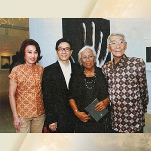 Melani Setiawan bersama Indra Leonardi, Pia Alisyahbana dan perancang busana Peter Sie dalam pameran “Indonesian Portraits” karya Indra Leonardi di Galeri Nasional Indonesia, 2007. (Sumber: Indonesia Art World)