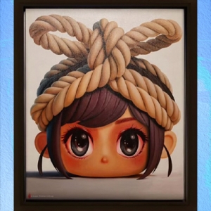 Ada kalanya seni tidak berbicara melalui keramaian bentuk atau kerasnya pernyataan, melainkan melalui sesuatu yang jauh lebih sunyi. Dalam ruang pamer yang hening itu, dapat dimaknai sebagai ungkapan syukur atas hadirnya kembali Gwen setelah periode sunyi dalam perjalanan artistik Andre Tanama. Jika pada kemunculan awalnya, Gwen hadir sebagai sosok yang selalu dengan mata terpejam—seolah berada dalam ruang batin yang tertutup. Namun dalam pameran ini, beberapa karya mulai menampilkan Gwen dengan mata terbuka lebar, ia tampil dengan kesadaran baru. Tatapan itu tidak menjadikannya ekspresif atau dramatis; sebaliknya, ia tetap tenang, nyaris tanpa gerak. Gwen tidak berbicara, tetapi kehadirannya memunculkan pertanyaan: apakah keheningan adalah bentuk penarikan diri dari dunia, atau justru cara lain untuk melihatnya dengan lebih jernih?