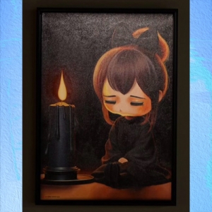 Menariknya, ketika beberapa karya lain dalam pameran ini mulai menampilkan Gwen dengan mata terbuka, Silent Flame justru seperti menandai titik sebelum perubahan itu terjadi. Ia menjadi semacam momen peralihan—sebuah jeda hening sebelum tatapan Gwen benar-benar terbuka. Karya tersebut tidak hanya berbicara tentang kesunyian, tetapi juga tentang proses: tentang bagaimana kesadaran lahir dari momen sunyi yang sederhana, seperti cahaya lilin kecil di tengah gelap.