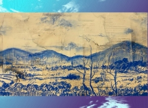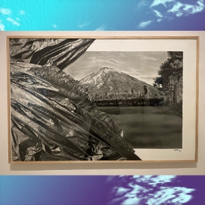 Lambar Laun karya Verifh Hendys, menggambarkan estetika gunung Sindoro yang awalnya asri nan sejuk berubah menjadi ruang eklopitasi alam dan industrialisasi. (sumber: dokumentasi penulis)