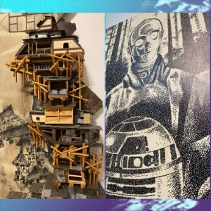 Penampakan detail karya Potrait di Balik Kota #1 oleh Asmoadji dan Dark Land Time Travel Series #1 oleh Robi Fathoni (Sumber: Dokumentasi penulis).