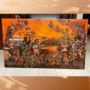 Perpaduan antara simbol tradisional, eksplorasi warna, dan struktur naratif tersebut membentuk identitas visual yang kuat dalam praktik artistiknya, sekaligus menunjukkan upayanya menggabungkan unsur tradisional dengan bahasa visual modern yang memuat nilai estetika serta makna budaya dan historis.