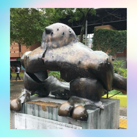 Lantaran bangga dengan senimannya, maka Kota Medellin lantas membangun patung monumen kreasi Botero di Parque San Antonio. Patung besar dari perunggu tersebut menggambarkan merpati gemuk yang sedang mendarat di pelataran. Maknanya: merpati perdamaian itu sedang tidak terbang, dan sedang berdekat-dekat dengan semua orang. Patung pun diberi judul “Pájaro”, atau “Merpati”.