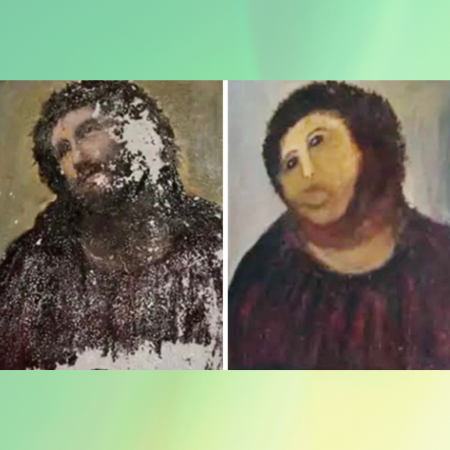 Di Borja, Spanyol, ada sehampar lukisan dinding ciptaan Elias Garcia Martinez yang menggambarkan Yesus. Wajah Yesus di situ rusak berat karena lembab. Cecilia Gimenez, menawarkan diri untuk merestorasi. Hasilnya, eh, sungguh buruk! Wajah Yesus tergambar seperti kera, sehingga di media sosial dijuluki “Yesus Kera”. Tapi kecelakaan besar ini justru mendatangkan ribuan turis untuk menyaksikan. Kota Borja senang dengan kenyataan mengejutkan itu, dan menyebut bahwa ini adalah bagian dari kebudayaan kontemporer.