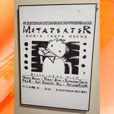 6 “Metateater: Dunia Tanpa Makna” garis besarnya dikerjakan oleh penulis, Harry Roesli, Rachman Sabur bersama Payung Hitam.