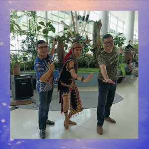 aat tiba di bandara Balikpapan, Ananda Sukarlan bersama manajernya Chendra Panatan dengan penari tradisi penyambut di bandara.